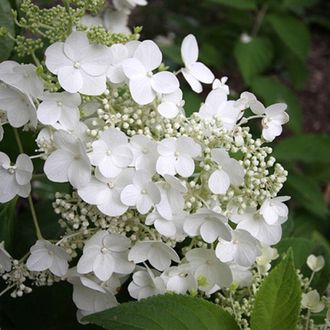 Долприм (Примвайт) гортензия метельчатая (Hydrangea paniculata ‘Dolprim’/‘Primе White’) сорт один из самых раннецветущих. Первые цветки появляются уже в конце мая – начале июня. Имеет элегантные белые, слегка плоские, не крупные метелки с большим количеством стерильных цветков с очень крупными лепестками, которые в фазе распускания имеют сливочный, ванильный оттенок, при полном роспуске становятся ослепительно белыми. Размер соцветия: 15-20 см. В продолжительное, теплое лето можно получить повторное цветение. Листья бледно-зеленые, сидят на ярко-красных черешках. Побеги изящные, тонкие, разветвленные, серо-зеленого цвета. Высота куста 1,8 - 2,0 м, ширина 1,3 - 1,5 м. Куст аккуратный, плотный, имеет правильную, симметричную крону, с большим количеством побегов. Цветёт с середины июня и до сентбяря.
