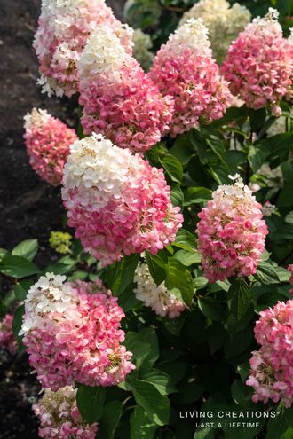 Пинки Промис гортензия метельчатая (Hydrangea paniculata `Pinky Promise`) высота этой гортензии не превышает 0,6 - 0,7 м и 0,7 -0,8 м в ширину. Обладает удивительно прочными побегами, поэтому куст не разваливается и держит форму даже в период обильного цветения. Соцветие пышное, 15-20 см, состоит из стерильных цветков. В начале цветения цветки ослепительно белого цвета, затем окрашиваются в нежно-розовые тона, и к концу становятся насыщенно розового цвета с лаймовым центром и желто-зелеными цветками внутри метелки. Цветет с июля по сентябрь.