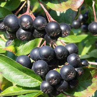 Черноплодна рябина "Викинг" плодородный кустарник с декоративной красиво окрашенной листвой. Плоды этого сорта довольно крупные, шаровидные, тёмно-синие, собранные в гроздья. В осенний период листва эффектно краснеет. Идеальна для приусадебных участков а также для производственных плантаций.