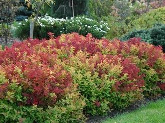 Макрофилла спирея японская (Spiraea japonica Macrophylla) - раскидистый кустарник до 1,5м высотой и таким же диаметром. Стебли жесткие и прямые. Молодые побеги красного цвета. Листья крупные, до 15см длиной, заостренные, зубчатые по краям, при распускании пурпурно-красные, зеленые летом, осенью золотисто-желтые, на концах побегов листья имеют красноватую окраску. Цветет с конца июня до середины августа розовыми цветками собранными в небольшие соцветия на верхушках побегов текущего года. Светолюбива, к почвам нетребовательна, морозостойкая. Плохо растет на тяжелых почвах. Рекомендуется весенняя обрезка, укорачивание побегов с четвертого года до высоты 30 см от земли. Переносит условия города.