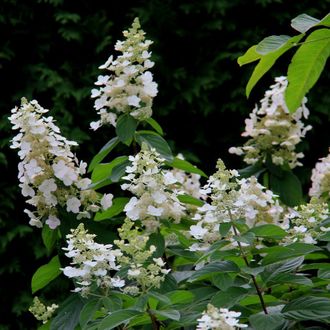 Гортензия метельчатая Тардива (Hydrangea paniculata Tardiva) - кустарник, достигающий 3 м высоты, годовой прирост 25 см. Цветки белые, собранные в очень большие метёлки до 30см длиной, отцветая становятся розовыми. Цветёт с июля до сентября. Хорошо растёт на местах солнечных до полутенистых и на легко кислых и влажных почвах.