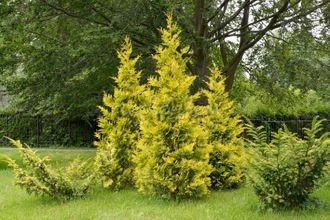Быстрорастущий конусовидный хвойный кустарник, высотой более 3м и диаметром до 1,5м. Чешуйчатая хвоя золотисто-желтая, сохраняет свой цвет зимой и летом. Не страдает от солнечных ожогов. Предпочитает умеренно влажные, хорошо дренированные почвы. Хорошо переносит стрижку и условия города.